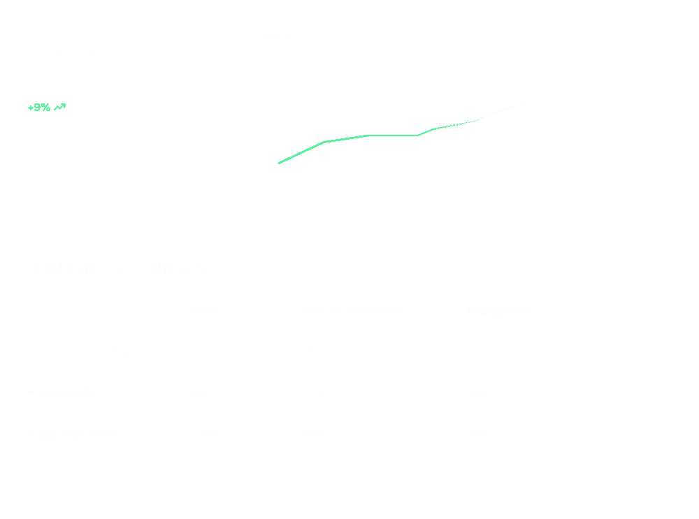 On met en place un dashboard personnalisé pour suivre votre évolution.